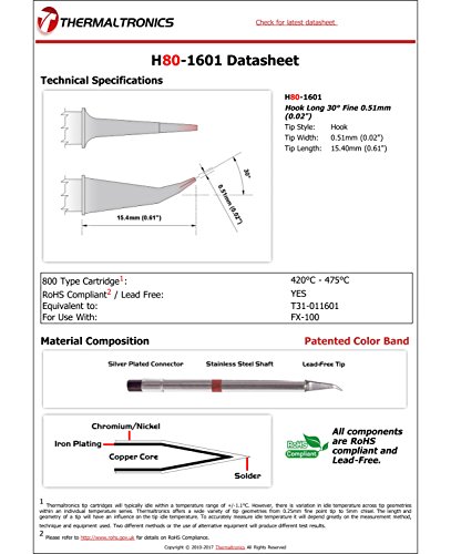 Thermaltronics H80-1601 Hook Long 30deg Fine 0.51mm (0.02") interchangeable for Hakko T31-011601