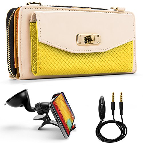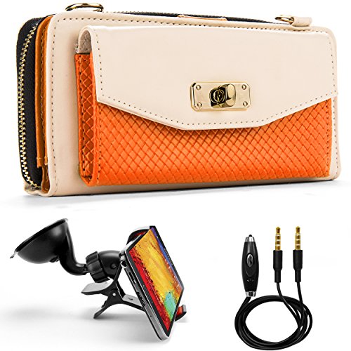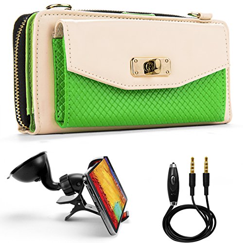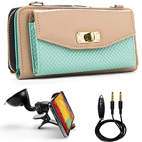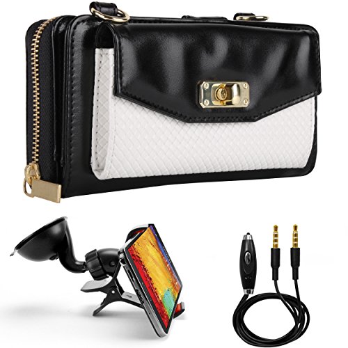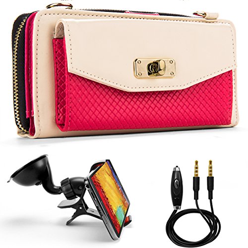 Venice Wallet Clutch Bag Carrying Case For LG G3, G3s, LG L, Optimus, Lucid, Spectrum, Escape, Venice... + Auxiliary Cable + Windshield Car Mount