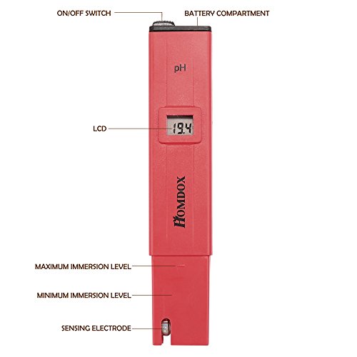 Homdox Portable pH Meter High Accuracy Quick pH Value Tester Pen Red/Yellow