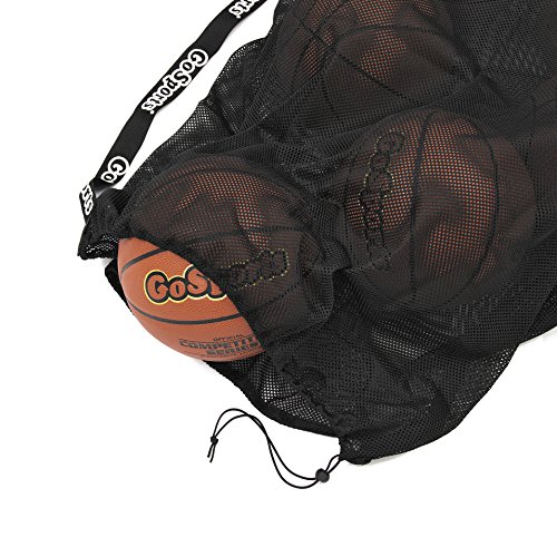 GoSports Premium Mesh Ball Bag with Sport Ball Pump, Black, Full Size