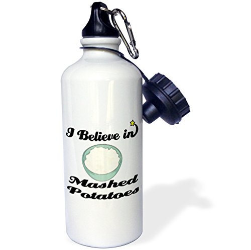 3dRose wb_105343_1 "I Believe In Mashed Potatoes" Sports Water Bottle, 21 oz, White