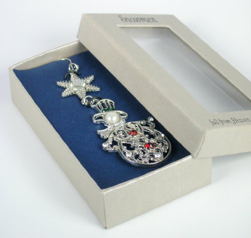 Holiday Decorations - Sparkly Snowman Ornament with Red and Clear Crystals and Pearls - Gift Boxed - Shiny Metal Filigree Snowmen Ornaments for Your Christmas Tree, Window, Present Topper