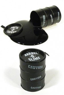 Black Barrel O Slime Texas Tea Oil DrumOur Barrel-O-Slime looks like black gold or Texas Tea! This black slime is super dark gooey and mysterious stuff. Our Texas Tea slime is a ooey, gooey plastic that smells good too! Open up the black “Caution� drum and pour out the weird goo. It stays together making no mess and it's non-toxic safe too. You just can't stop playing with it! Type: Black Slime - Solid, Liquid Toy Category: Silly Putty and Slime - For Ages 5 and Up ( Not For Children Under 3) Size: 3" Tall Non-Toxic Drum (3 x 2 x 2 inches) Package: One Drum with Black Ooze - "Barrel-O-Slime" Aaron's Giggle Meter: 10 of 10Feature