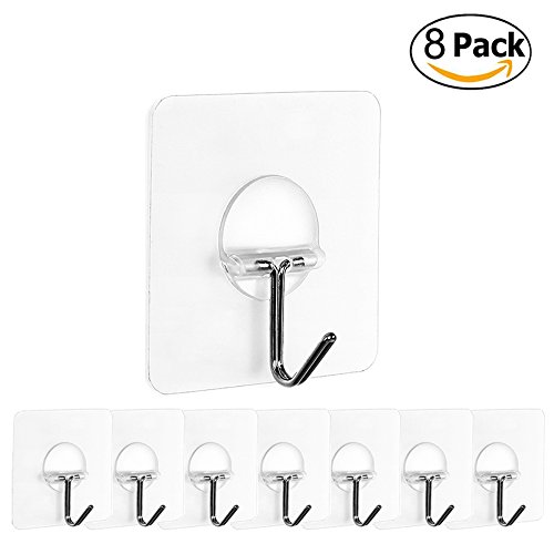 Heavy Duty Hooks 13lb(Max) Transparent Reusable Seamless Hooks No Scratch Hooks ,Waterproof and Oilproof, Bathroom Kitchen Wall hook & Ceiling Hanger,8-Hooks.