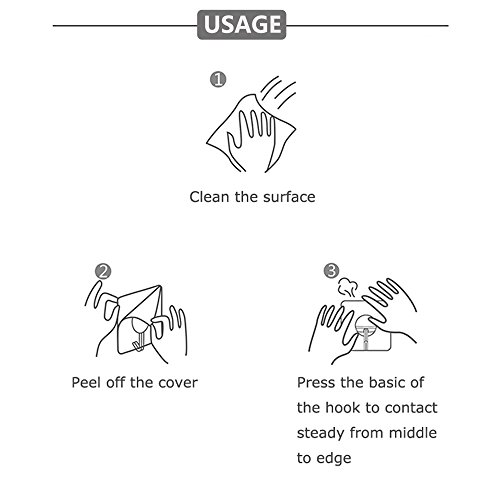 WIDE APPLICATION -Widely used on a variety of surfaces, like Wood, Tile, Ceramic ,Metal, Plastic Surface and more (please pay attention that there are limits on painted walls),especially great for hanging shower or bath accessories in a bathroom or kitchen utensils and tools on a tile backsplash。