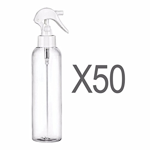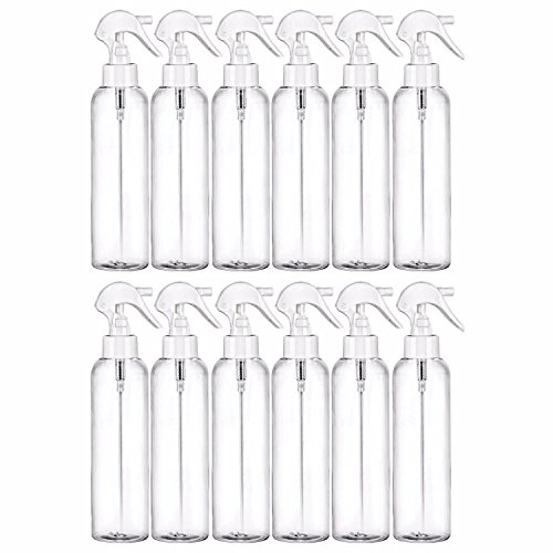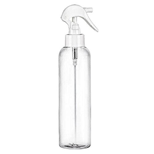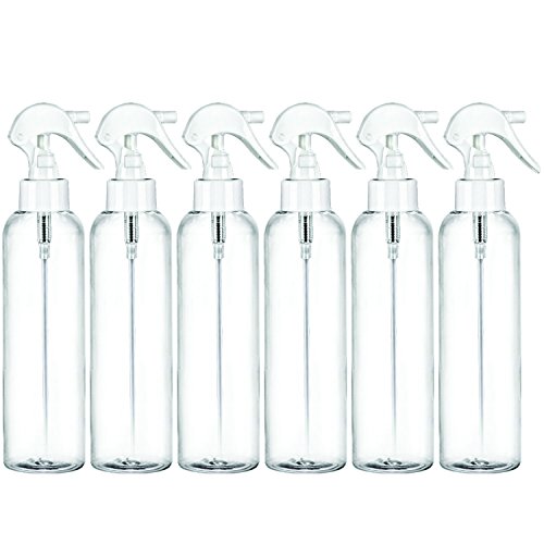 Clear 8oz sturdy bottles, reusable 8 oz spray bottle, refillable Spray plastic bottle, washable bottle are empty spray plastic bottles are durable misting spray bottles. Industrial strength 8 oz spray bottle kit can be used for many of your house cleaning, traveling accessories, essential oil, hairspray and skin care needs including perfume and cologne; a safe plastic water bottle.
