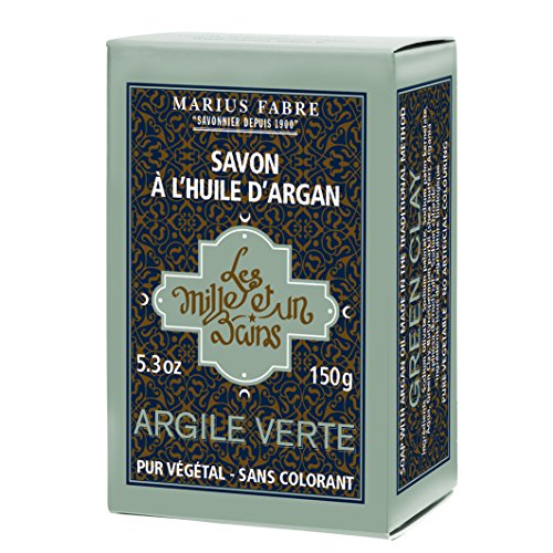 Enjoy the soothing and relaxing virtues of green clay with this Argan oil bar soap. Manufactured only with vegetable oils, including the high-quality organic Argan oil with no coloring nor preservative. Marius Fabre, soap manufacturer in the south of France since 1902, adds its quality label to this soap. French Green clay originates from quarries in France. When used in soap making, it is added as a natural colorant. French Green clay has very high levels of absorbency. Its molecular structure allows it to absorb oil, dirt and toxins from the skin. It balances oily skin to normal pH levels. It can be used daily on local acne spots and in facial masks. Oily hair may benefit from using this clay when added to hair products.Feature