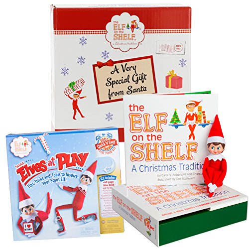 Scout Elves at Play Kit- tips, tricks, and 15 elf- sized tools for your girl elf on the shelf. This Elf on the Shelf kit includes a 60-page book full of tips and ideas that will inspire your Christmas scout elf of countless ways on how to create special holiday moments. The scout elves play kit also includes 15 small tools your elf can utilize to inspire spirit in the most fun and creative ways, such as: a swing, elf boots, Christmas candy canes, and more! She'll hang out on the Christmas Tree, from the ceiling, or even in the kitchen before returning back to his home at the North Pole every night. Your little one will be excited to see what Santa's little helper will do next, yet the whole family will enjoy this timeless classic. The Scout Elves Play Kit will display all of the ways to unleash Christmas magic all the way from the North Pole!Feature