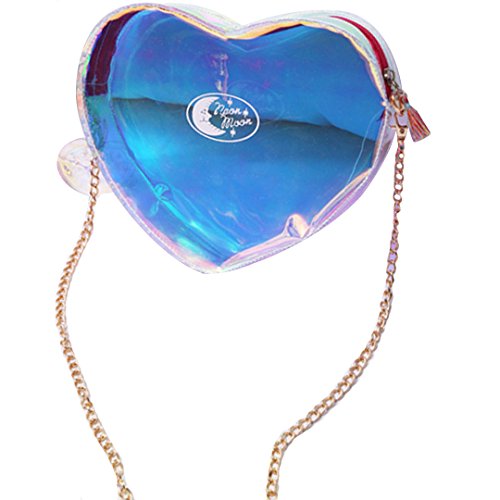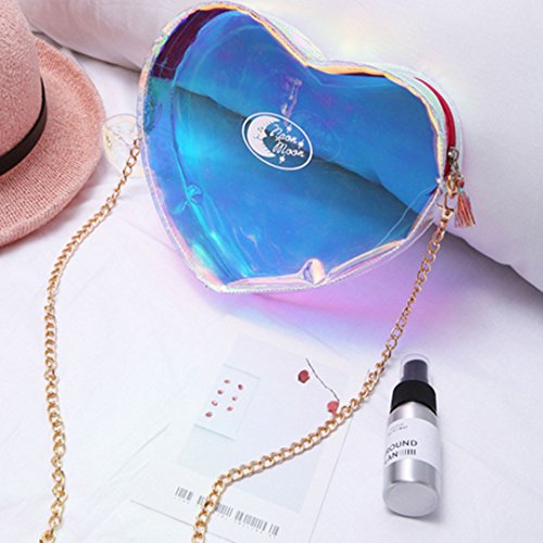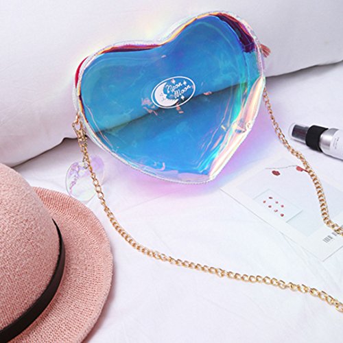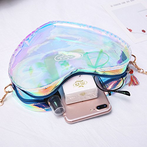 Mily Women Casual Transparent Heart Shape Laser Crossbody Bag Fashionable Phone Bag