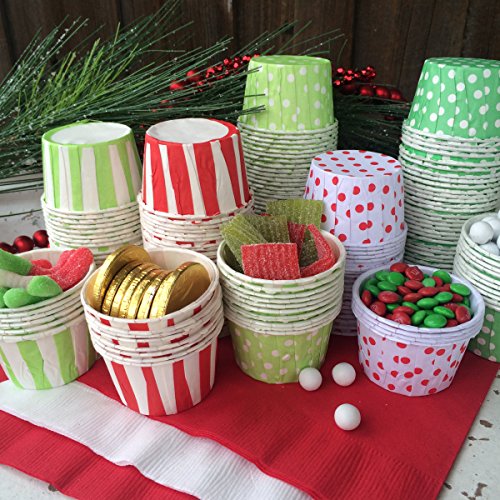 Christmas Candy Nut Mini Baking Cups - Red White and Green Dot - Bulk 100 Pack