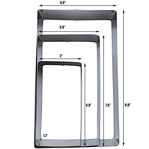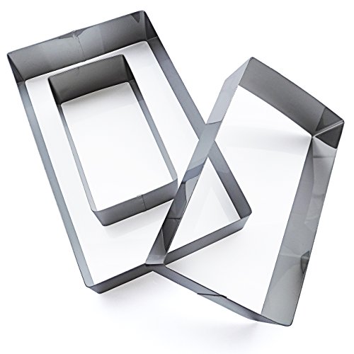 3 Tier Rectangular Multilayer Anniversary Birthday Cake Baking Pans ,Stainless Steel 3 Sizes Rings Rectangular Molding Mousse Cake Rings(Rectangular-shape,Set of 3)