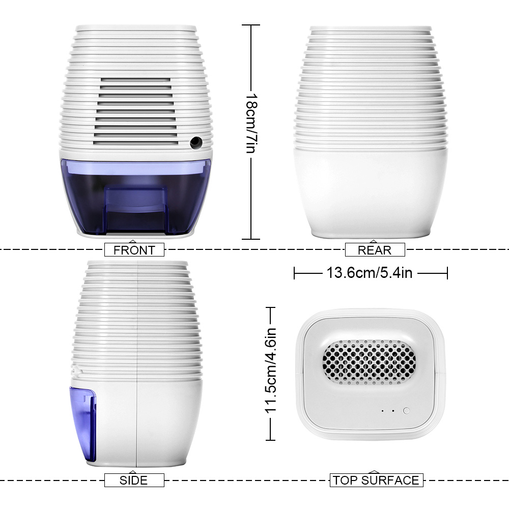 • Compact and exquisite:Built-in grip,this portable handy dehumidifier is highly flexible in application,such as bathroom,kitchen and closet.
