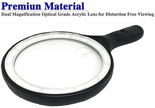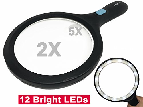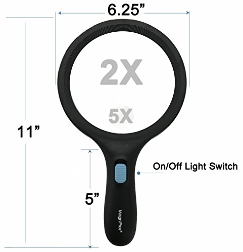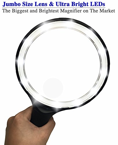 MagniPros 5.5" Jumbo Handheld Magnifying Glass with 12 Bright LED...