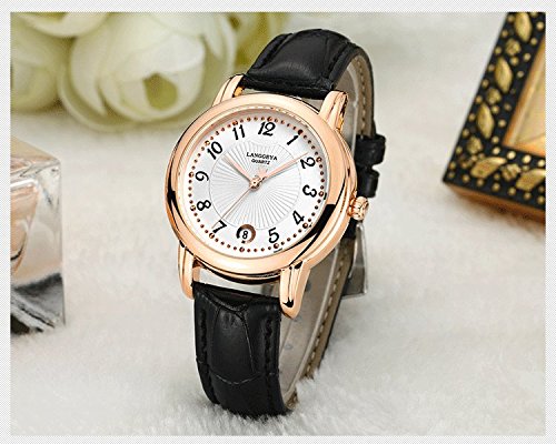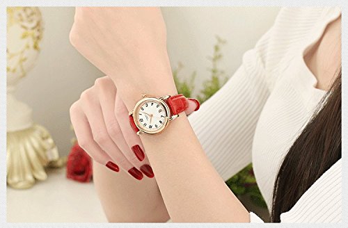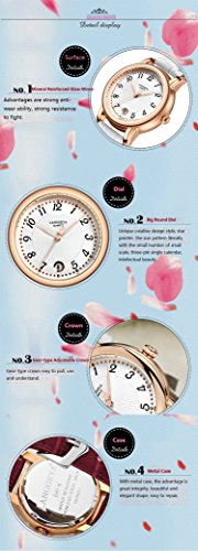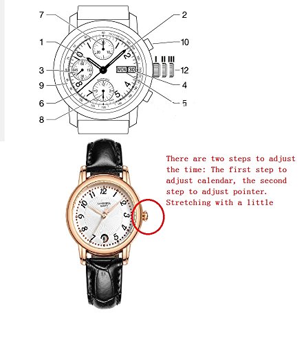 -. Feature : Fashion women' s quartz watch, original installation import quartz movement provide precise and accurate time keeping. Classic round dial with star pointer, sun stripes and small metal nail scales, three-pin single calendar, expresses the beauty of intellectual women; / Adopt mineral reinforced glass mirror which has strong scratch resistance and strong resistance to fight; Adjustable gear crown, easy to understand, pull and use (Attention: There are two steps to adjust the time: The first step to adjust calendar, the second step to adjust pointer. Stretching with a little force); / Genuine Leather, anti-sweat, anti-wear and close to skin, no smell, comfortable and easy to wear or take off, best decorations for most women while on business, home or other leisure place; / 30M waterproof. Need not to take off the watch while washing hands, face, swimming, or in the rain(Avoid the hot water and steam). Meet daily needs. However, do not push the button under the water; / Best gifts for friends or family during birthday, wedding, festival, party, Christmas, thanks giving day and so on. Comes with a watch box and a spare battery. If you meet any question or problem, please feel free to contact us, we will solve for you all the time.