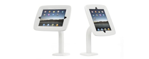 -. Feature : Secure, flexible desktop mount for iPad, iPad 2, or iPad (3rd generation) in commercial, retail or other multi-user settings. / Display iPad in portrait or landscape orientation. / Mounted height measures 12" to center of iPad. / 3 included faceplates allow controlled access to camera and Home button. / Secured power cable, security mounting hardware, and installation tools included.