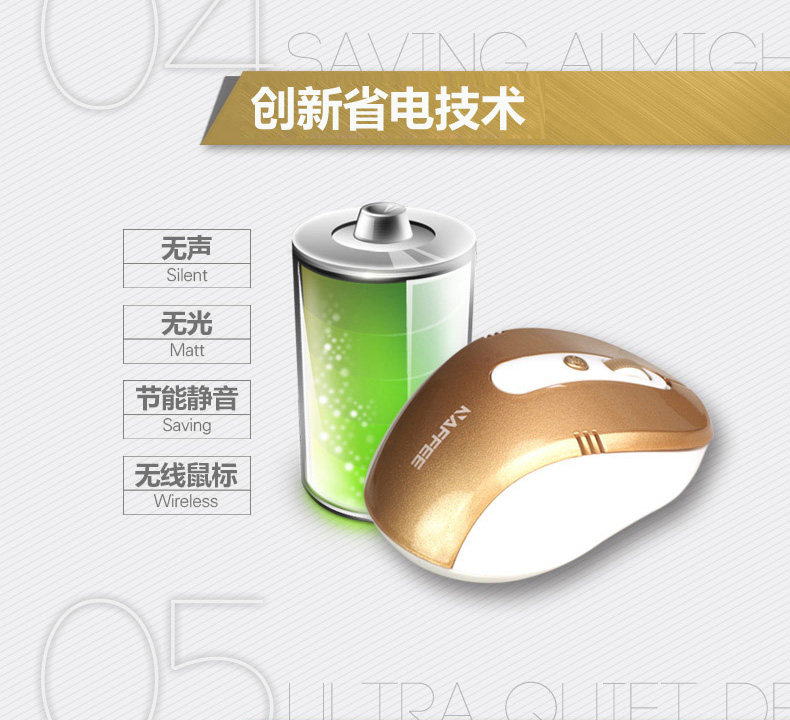 耐菲S9无线鼠标 笔记本电脑台式游戏鼠标 无声无光静音 省电鼠标