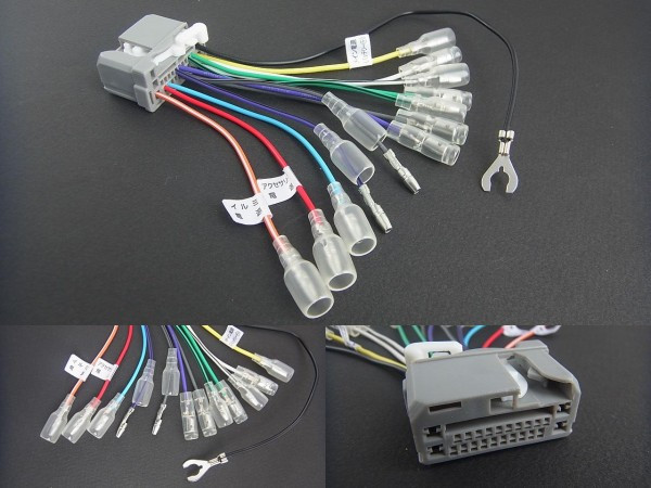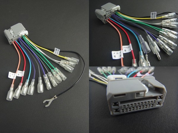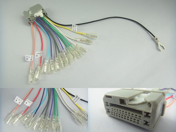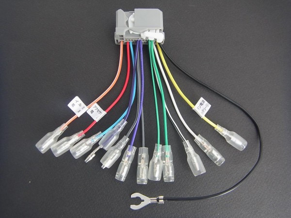 | 純正オーディオを他社メーカーのお車に取り付けするときに使います。純正オーディオは自動車メーカーによって、ステレオコネクターのカプラ形状が異なります。各配線に「電源各種」、「アンテナコントロール」など配線種類の名称タグがついていますのでつけるときに便利です。 |