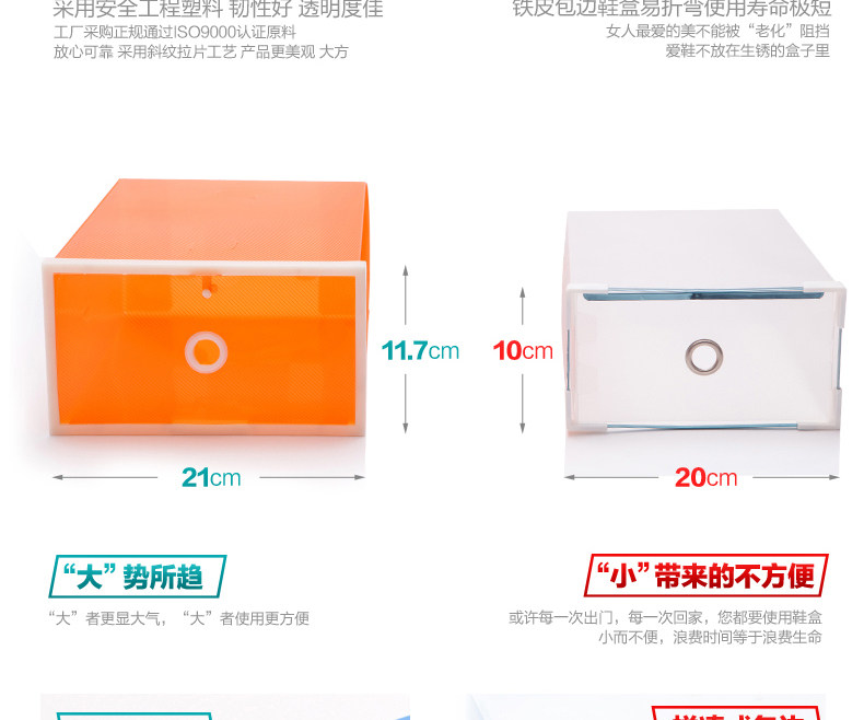 8个装 加厚加大透明鞋盒 男女通用抽屉式鞋盒子 鞋柜式鞋子收纳盒