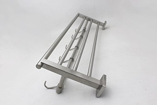 XVL Bathroom Towel Rack Bathroom With Robe Hooks Shelf Brushed Steel G506-2
