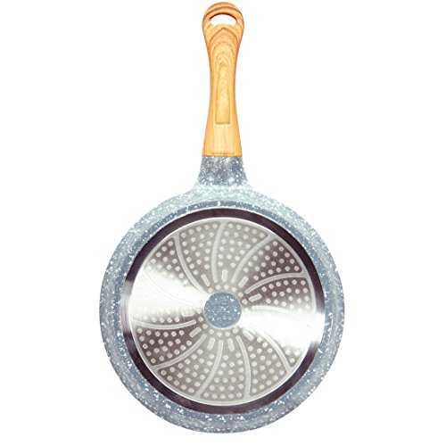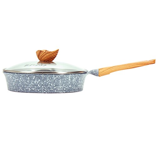 COOKLOVER Nonstick ceramic coating deep fry pan includes:1 pc of fry pan with soft touch wood design handle & 1 pc of glass lid with soft touch wood design knob. Nonstick cookware instructions to the user: 1. Before first use,please tear up the label,then rinse thoroughly and wipe dry. 2. Should use the heat-resistant nylon,plastic or wooden spatulas for cooking in order to avoid the sharp or metal appliance that damages the surface of the nonstick pan. 3. Nonstick cookware features safe use and heat transmission,just need to use medium to low heat while cooking then it can produce delicious and tasty food.Must have the food or water in the pan if using the high heat. 4. Our qualified nonstick coating is extremely stable substance;acid resistant,alkaline resistant,not easy to react with other chemicals, so you can rest assured that use. 5. Why the cook wares'exterior also coated with non-stick coating?The rinse will be easy for both insides and outsides. It won't cause problems for rinsing even the food sauce spilled on outsides. 6. Is it harmful to people if the nonstick surface fall off and mix in the food? Qualified nonstick surface is absolute safe and non-toxic. It isn't absorbed by the body even it's inhaled;it can be effectively eliminated from the body.In general,use properly,the nonstick surface is not easy to fall off. COOKLOVER's cookware designed for reliable everyday cooking, we firmly believe that the world most attractive natural and cultural elements for more pleasant living and dining experience. Art of kitchen, preparing,serving,cooking and enjoying.Feature