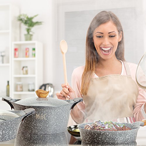 Interior & exterior High perfomance nonstick caramic coating makes it easy to cook and clean.Enviromental friendly.