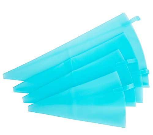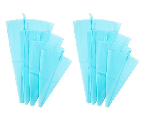 Tebery 4 Sizes/8 Pack Premium Silicone Pastry Bag, Reusable Icing Piping Bag Frosting Bag Baking Cake Decorating Bag (S+M+L+XL) -Blue color
