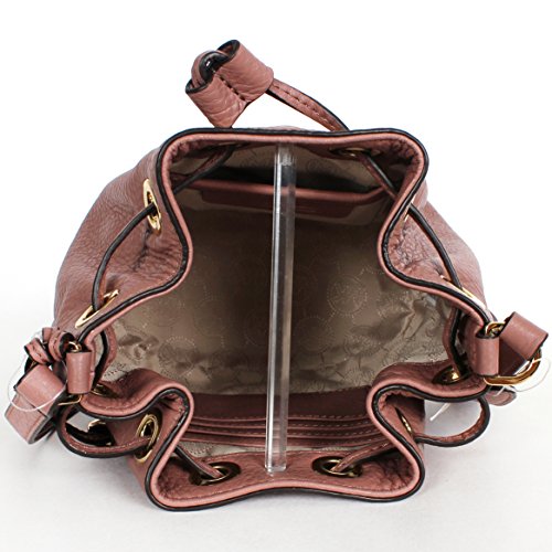-. Brand : Michael Kors -. Department : womens -. Feature : Lightly pebbled leather with silver-tone hardware / 6" W x 6-1/2" H x 3" D - measures small / Adjustable strap with 22"-25" drop / Drawstring closure / Interior features 1 open pocket and 4 card holders -. Model : Jules Drawstring Crossbody -. ProductGroup : Shoes -. ProductTypeName : HANDBAG -. Title : MICHAEL Michael Kors Jules Leather Mini Drawstring Crossbody Go for glam. This season's must-have drawstring crossbody bag. Highlighted by signature hardware, the compact and convenient shape pulls your look together effortlessly. By MICHAEL Michael Kors.