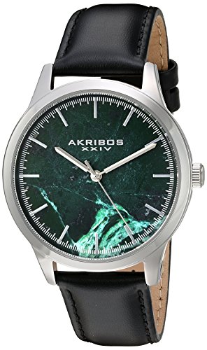 -. Title : Akribos XXIV Men's Silver-Tone Case with Green Marble Dial on Black Genuine Leather Strap Watch AK937BKGN