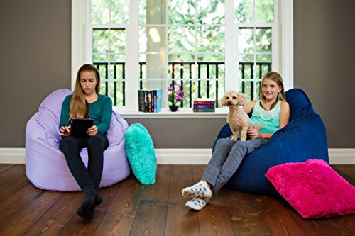 Product Description This structured bean bag chair is a must have! Just the perfect size at 35" x 35" x 30". Easily wipe down this fabric with a damp cloth. Each bean bag is filled to perfection with lightweight foam beads. The filling is magic as it allows the bean bag to mold to your body. All of our Bean Bag Chairs come with the innovative safety zipper pull which is inaccessible to small children as well as an inside liner for your chair for extra durability. All of our fabrics we use are top of the line! The Pod is 100%Polyester. 0