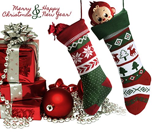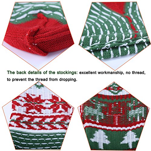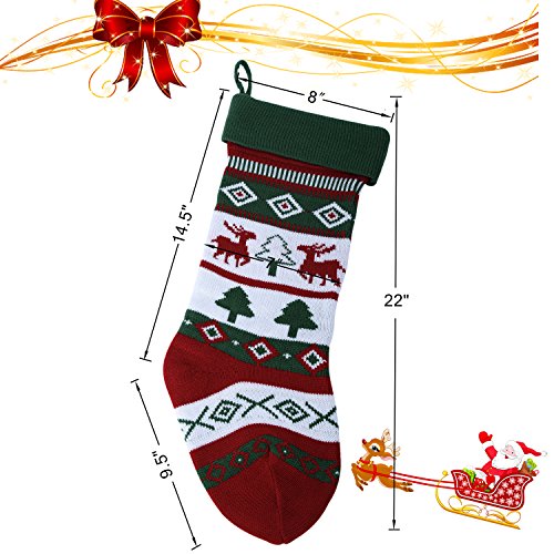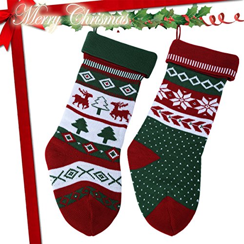 Knit Christmas Stockings for Family 22" x 7" Sets of 2 – Red/White/Green Snowflake knitted Hanging Bags - Holiday Gift - Decor,Decorations Christmas Tree,Mantel