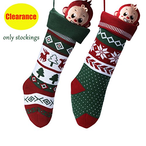 - INCLUDED:2 assorted stocking which are decorate.A bit different but match with each other.Multi color designs,give traditional red, white and green a playful update.Black friday, cyber monday, holiday deals Week with coupon is coming,our stocking is your best christmas gifts choice!!