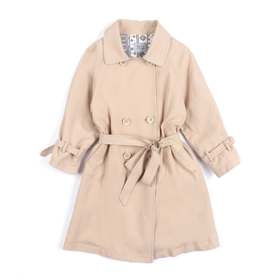 롱한 기장감의 트렌디하면서도 세련된 여아 트렌치 코트입니다.