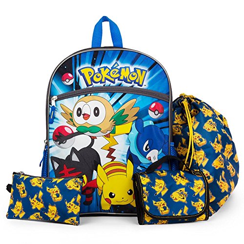 -. Feature : Pokemon Pikachu, Rowlet, Popplio & Litten / Zipper closure Air mesh side pockets / Adjustable shoulder straps / Foldable lunch box / Polyester Spot clean Age 5 years and up