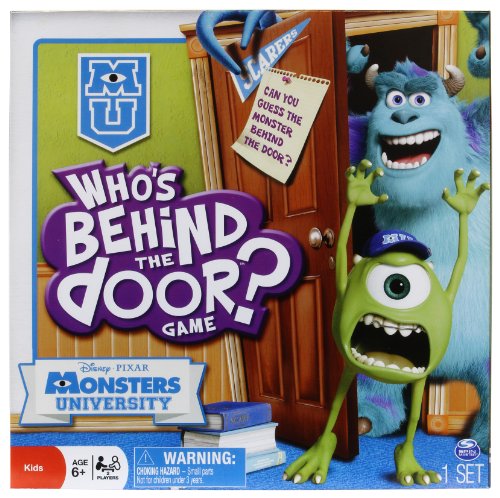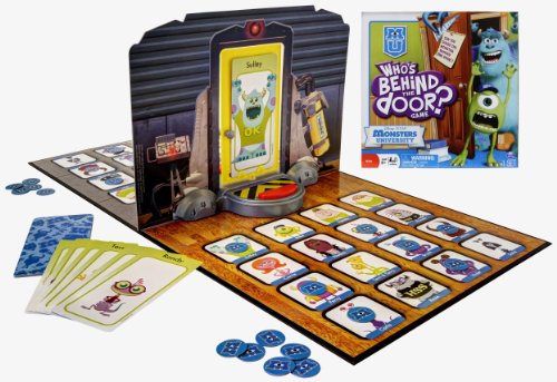 -. Feature : Welcome to Monsters University! There's a Monster behind your door, can you figure out who it is / Become a top student at Monsters University by using "yes" or "no" questions to reveal which monster is behind your door! / Who's Behind The Door is great for every Monsters University fan but is made for 2 players ages 6+. / Discover all your favorite Monsters University characters in this fun loving memory game! / Includes: 1 Monster Door Stand, 1 Door, 1 Wall, 1 Game Board, 16 Monster Cards, 32 Tokens, Label Sheet, Instructions