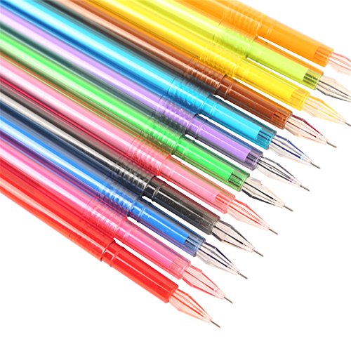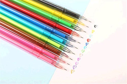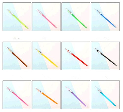 -. Feature : 12 Vibrant Colors, No Duplicates. There is a light green, pink, green, blue, brown, yellow, red, black, hot pink, orange, purple, light blue . The color of pen bodies matched colors allows you to find your desired color at a glance. / Good flow, vibrant color. They write smooth and clean, no blurring or smudging as your hand moves across the page. The colors are bright and beautiful. / Perfect for note taking , brainstorming, journaling, doodling,underlining, or simply writing.These pens are good for coloring in adult coloring books or for drawing or making thank-you cards, meeting notes and to-do lists. / No bleeding or smearing. They have the nice fine point tip, the ink dries quickly and goes on clear and precise. The pens are thin and fun to hold in your hand. the ink does not bleed through the page, even on thin notebook paper (although a faint outline is visible). The ink, though not waterproof, flows freely and vibrant.