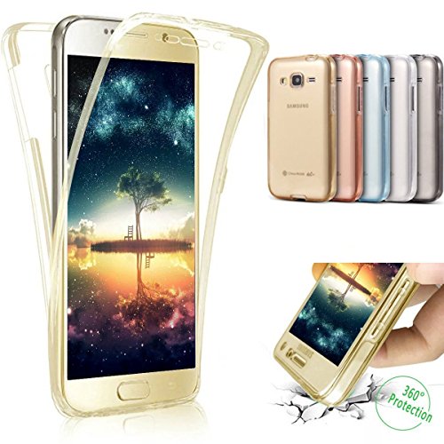 Galaxy J7 2016 Case, Galaxy J7 2016 TPU Case, PHEZEN 360 Full Body Protective Ultra-Slim Soft Clear TPU Case Silicone Rubber Bumper Case Cover for Samsung Galaxy J7 2016, Gold