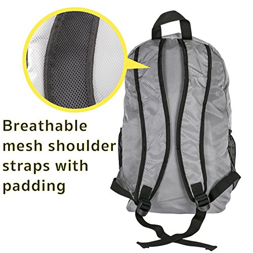 SPACE-SAVING COMPACT SIZE Foldable and portable, you can fold into zippered inner pocket to fit anywhere and unfolds from pocket to backpack in seconds.
