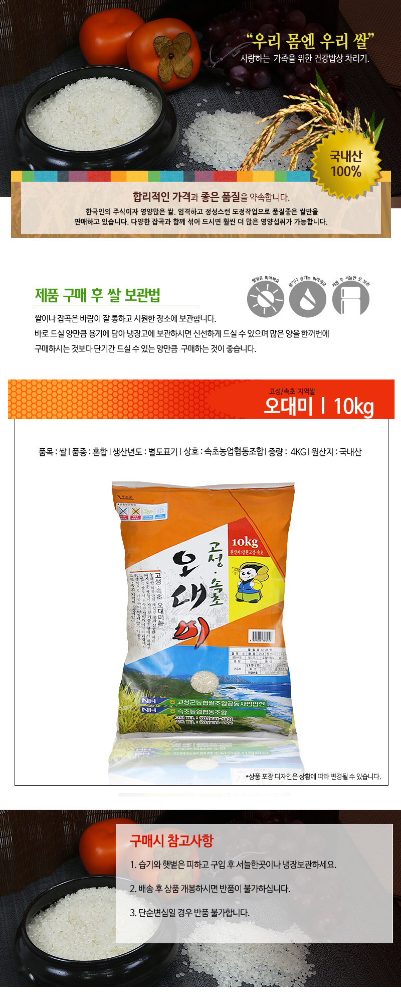 - 포장단위별 용량(중량)/수량/크기오대미 10kg