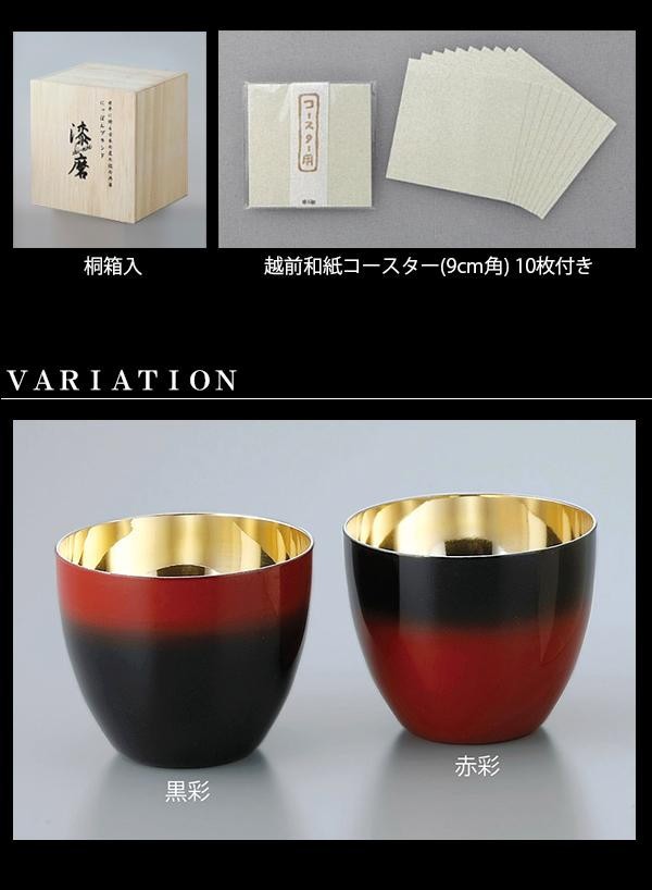 | 素材・材質 | 表面塗装:本漆塗装 手塗り仕上げ(内面:金仕上げ) 素地の種類:18-8ステンレススチール |