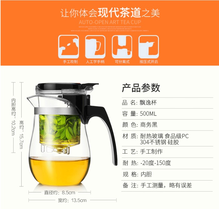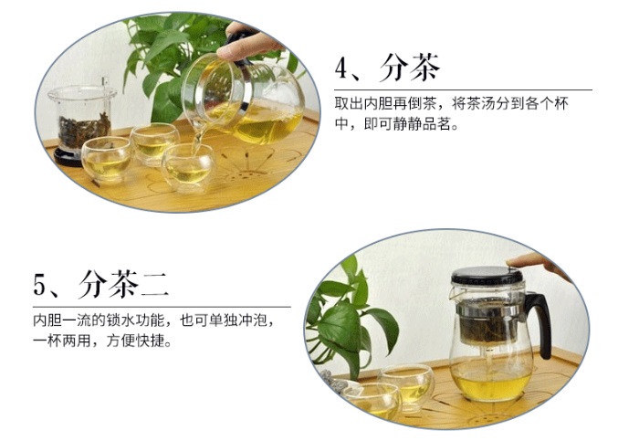 Brew your loose leaves or tea bag in the infuser by adding water at the right temperature. After the brewing time has passed, simply press the button on top to let the resulting tea liquor flow in the tea pot. Now, your tea is ready to be served.