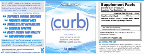 -. Binding : Health and Beauty -. Brand : VH Nutrition -. EAN : 0617237558701 -. Feature : FREE Standard Shipping on All US Based Orders (even non-P.R.Ime). / 100% natural hunger and appetite blocker / reducer to lose weight fast. Works in AM and PM to aid in reducing appetite. As an appetite suppressant Curb is a hunger killer and depressant to lose weight rapidly. It works with your body through out the day and night time to suppress your hunger cravings. / Burn more calories by boosting your metabolism thought out the day. / 100% Satisfaction guaranteed with a 30 day money back guarantee. -. Label : VH Nutrition -. Manufacturer : VH Nutrition -. ProductGroup : Health and Beauty -. ProductTypeName : HEALTH_PERSONAL_CARE -. Publisher : VH Nutrition -. Studio : VH Nutrition -. Title : Curb Appetite Suppressant | 100% Natural Hunger and Appetite Reducer -. UPC : 617237558701