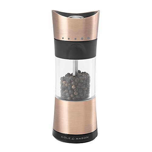 COLE & MASON Horsham Copper Pepper Grinder - Acrylic Upside Down Mill Includes Precision Mechanism and Premium Peppercorns