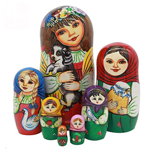 -. Title : Cute Little Girl Holding a Dog Wooden Russian Nesting Dolls Matryoshka Dolls Set 7 Pieces For Kids Toy Birthday Christmas Gift Home Decoration