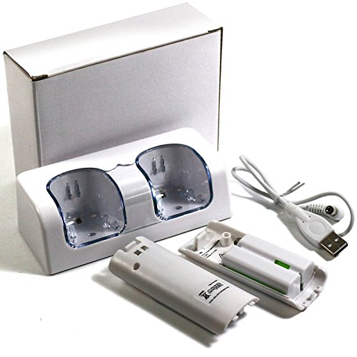 - Title : Sminiker Dual Wii Remote Charger Charging Station with 2 Rechargeable Batteries & LED Light for Wii Remote Control- (Original Wii Controllers Not Included)White