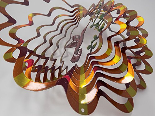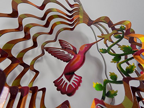 Shipityourway 3D Wind Spinner Hummingbird Flowers Yard Art Garden Twister (12" Inch, Multi Color Golden Copper Amber)