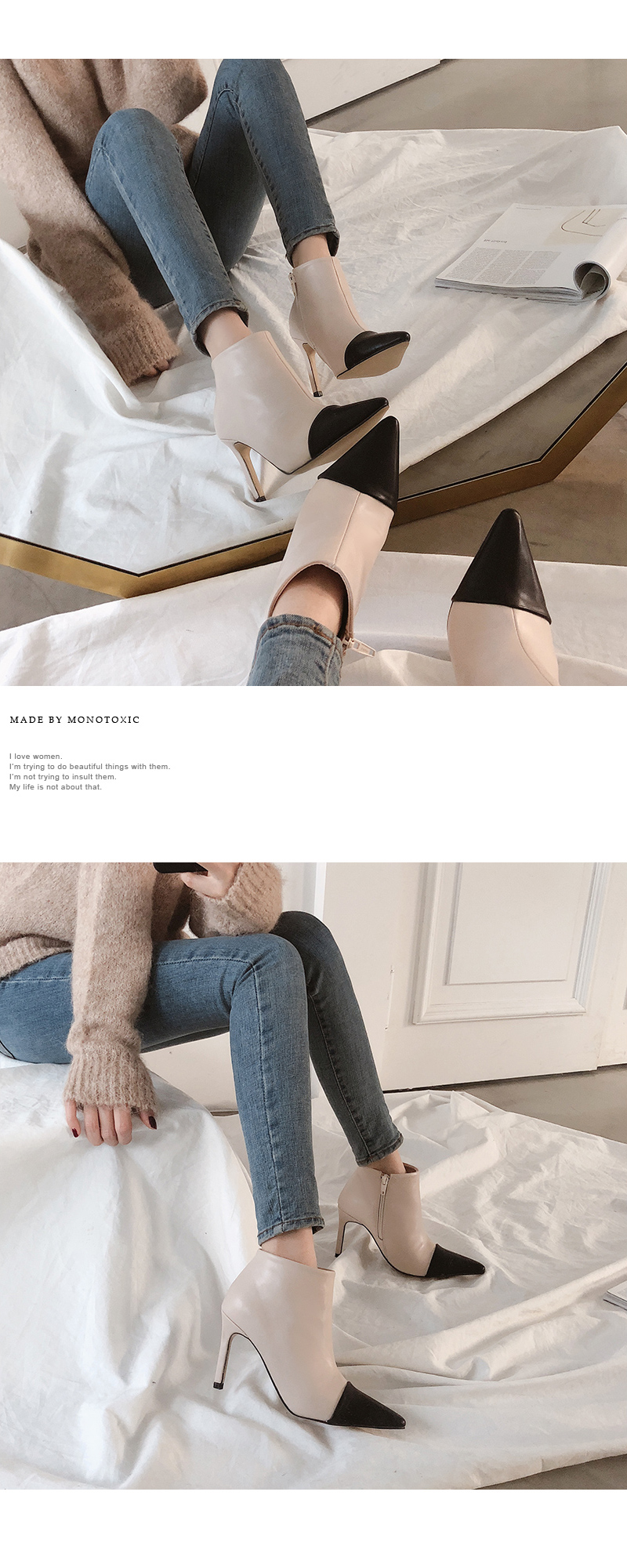 룩에 따라 다양한 느낌을 지니는 완벽한 드레스업 부티입니다