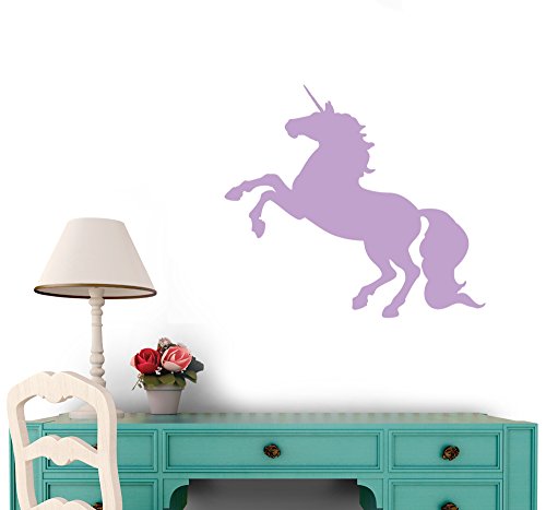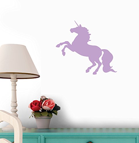 Rearing Lavender Unicorn Wall Decal by Wallmonkeys Peel and Stick Graphic (30 in W x 27 in H) WM57827