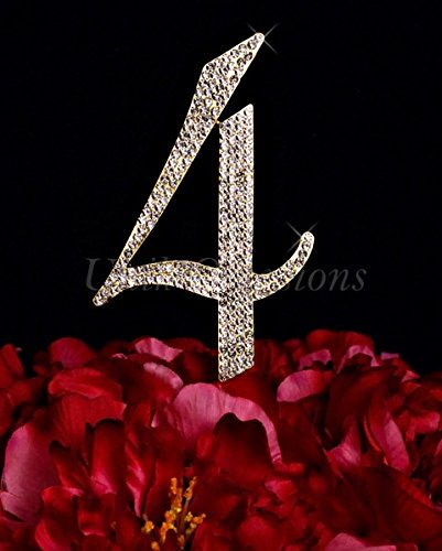 Unik Occasions Sparkling Collection Crystal Rhinestone Monogram Cake Topper, Number 4, Gold