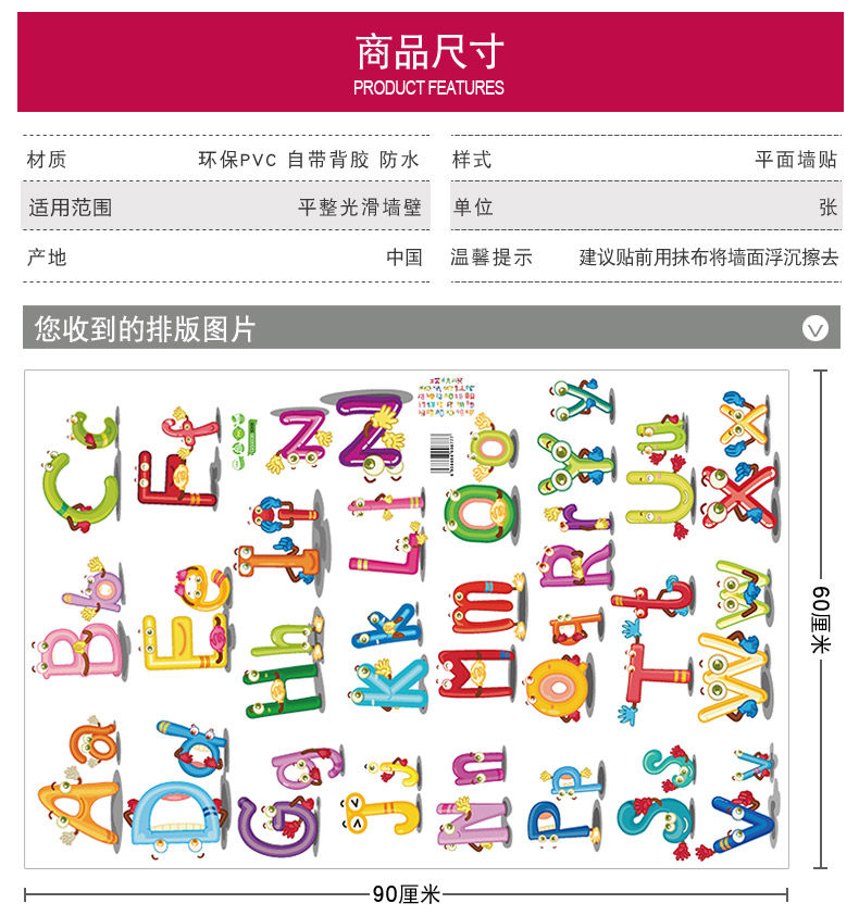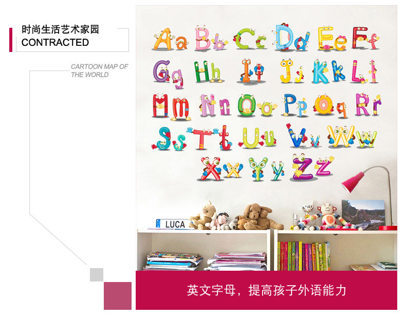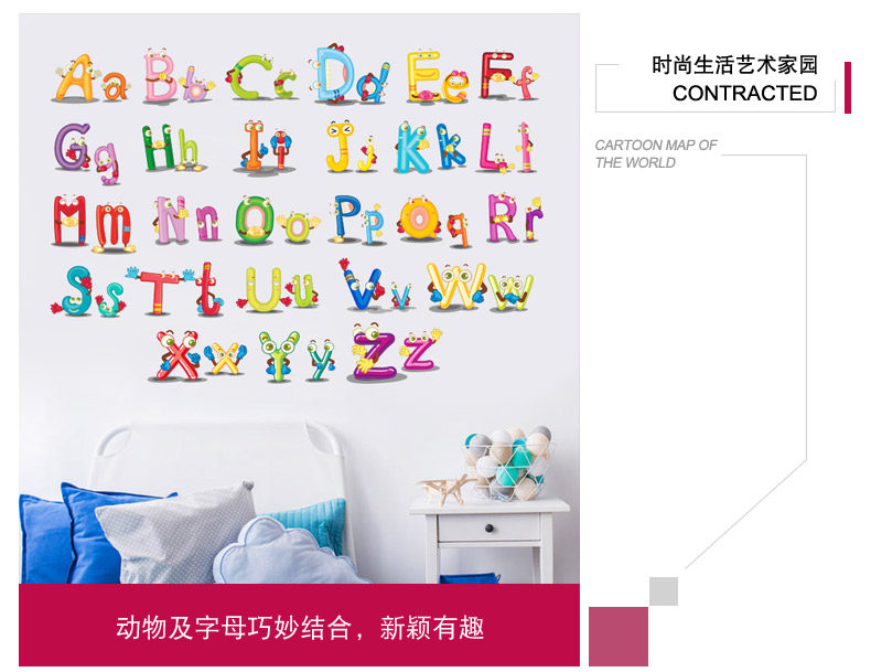 儿童房装饰品幼儿园墙面贴纸早教英文字母表床头贴画自粘墙纸墙贴