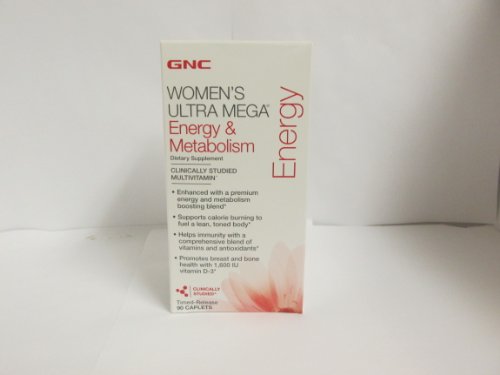 -. Binding : Health and Beauty -. Brand : GNC -. EAN : 0048107103507 -. Feature : Dietary Supplement that is used to boost energy in women / Enhanced with a premium energy and metabolism boosting blend and supports calorie burning in order to fuel a lean and toned body / Helps immunity and promotes breast and bone health -. IsAdultProduct : 0 -. Label : GNC -. Manufacturer : GNC -. PackageQuantity : 90 -. ProductGroup : Health and Beauty -. ProductTypeName : HEALTH_PERSONAL_CARE -. Publisher : GNC -. Studio : GNC -. Title : GNC Womens Ultra Mega Energy & Metabolism -. UPC : 048107103507